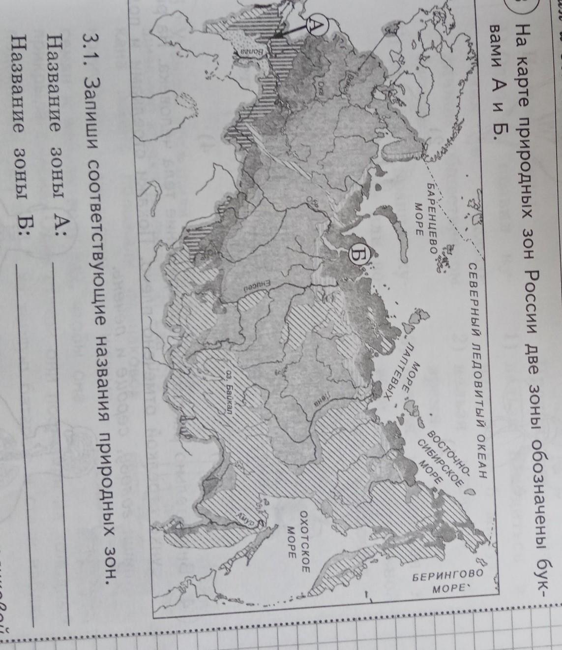 На карте природных зон России две зоны обозначены буквами А и Б.