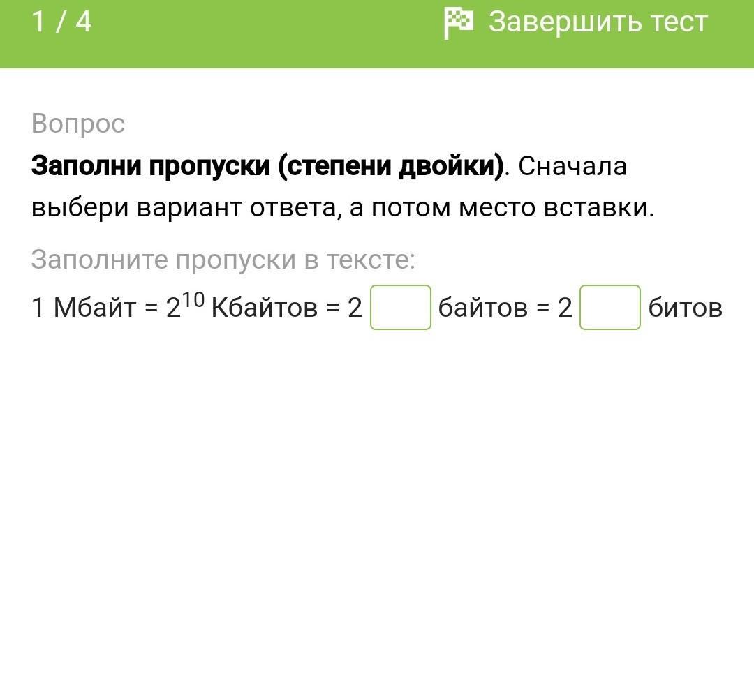 4 в 23 это уже какое то запредельное число и точно в ответ не подходит. Какие вообще варианты есть?