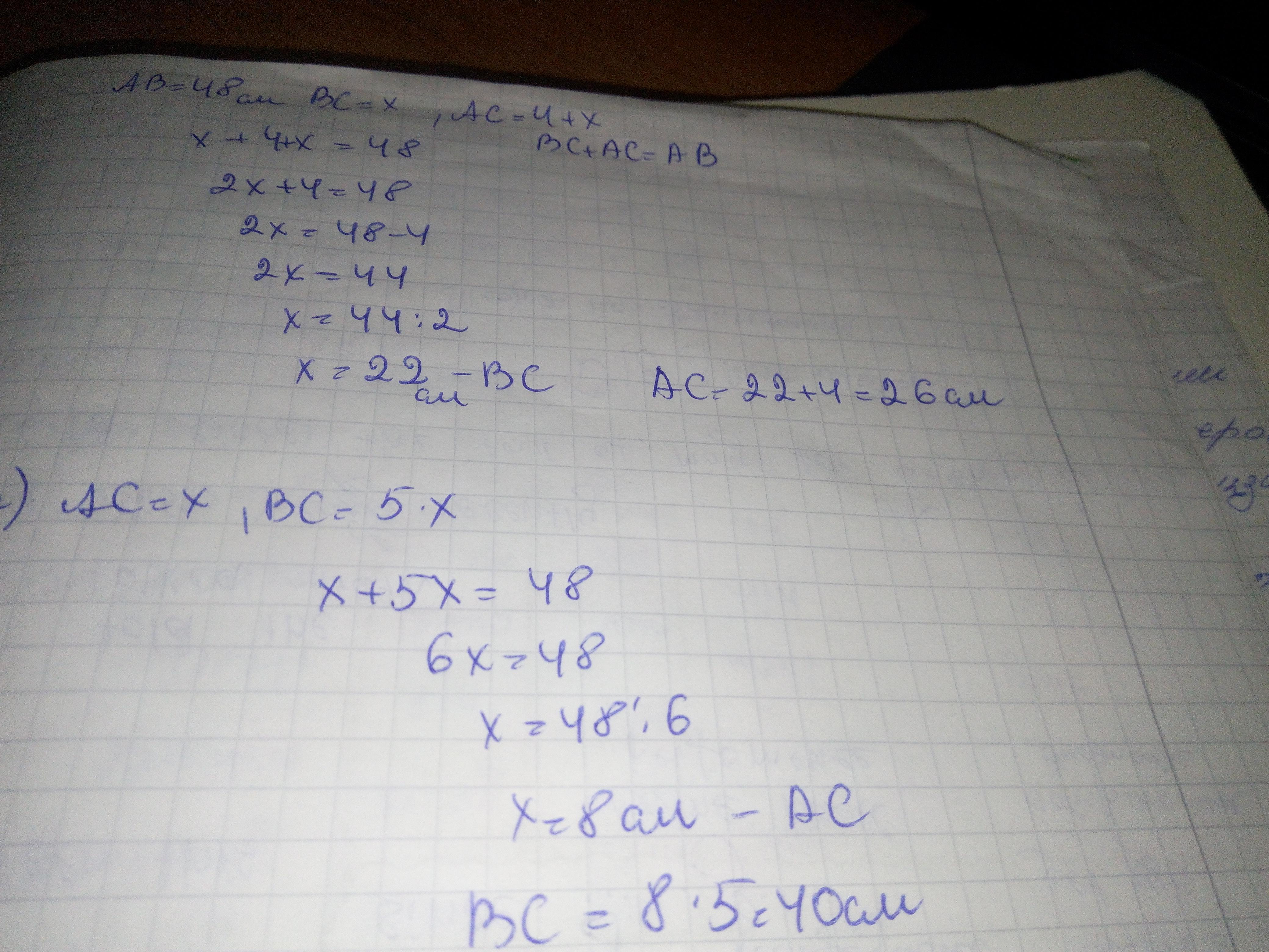 1) відрізок АС на 4 см більший за відрізок BC;