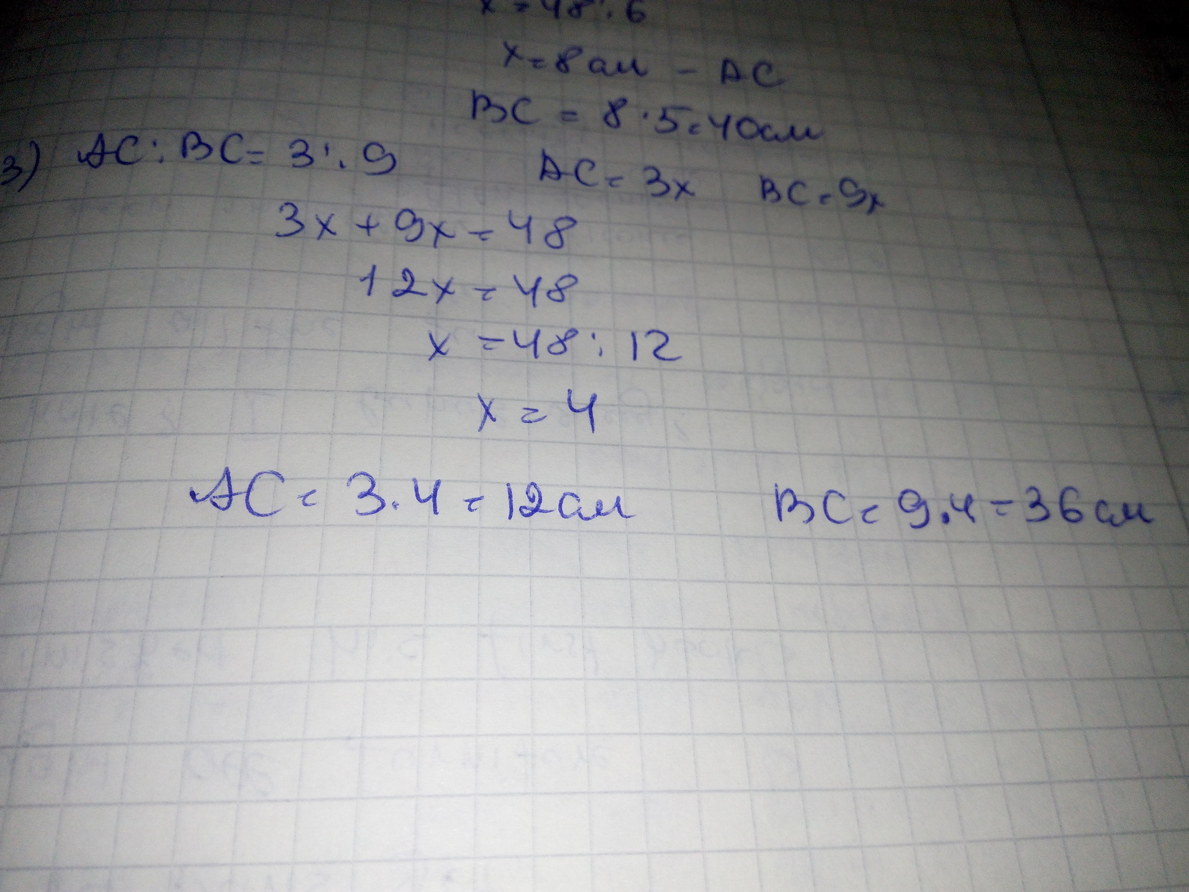 3) AC:BC=3:9.