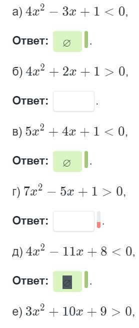 Записать ответ числовым промежутком (помеченные знаком x0 решать не надо)