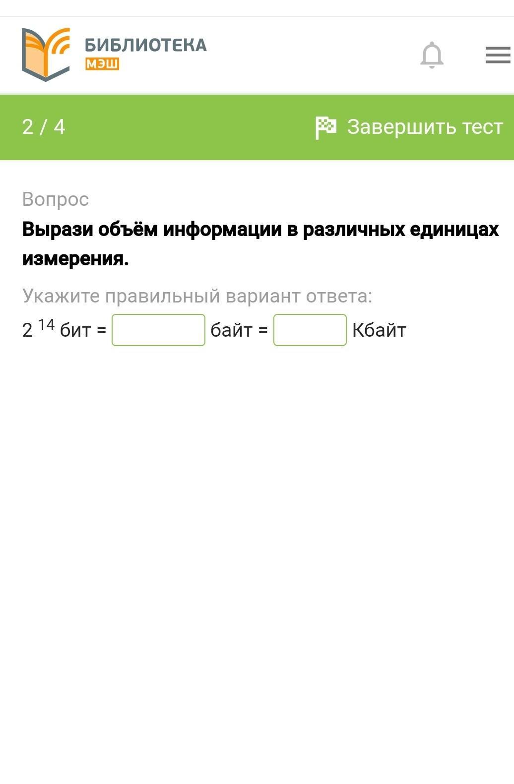 Вырази объём информации в различных единицах измерения.
