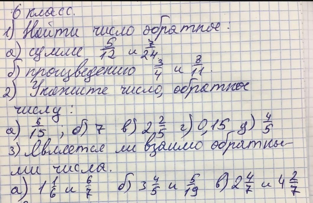 б)3/4*8/11= 6/11 , Обратное = 11/6 ( по фото не видноцифру, вроде-бы 8/11)