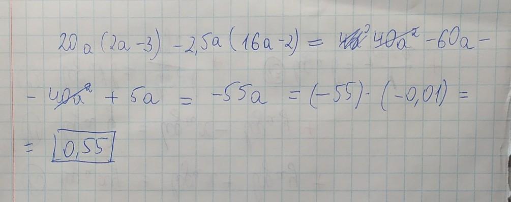 20а(2а-3)-2,5а(16а-2)=40а²-60а-40а²+5а=-55а