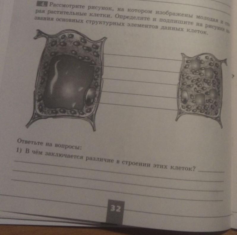 Рассмотрите рисунок на котором изображены молодая и старая растительной клетки Определите и Подпишите на рисунке названия основных структурных элементов данных клеток Ответьте на вопросы В чём заключается различие в строении этих клеток какое значение имеют поры игровые каналы для растительной клетки Какую роль играют хлоропласты и вакуоли в жизни растительной клетки