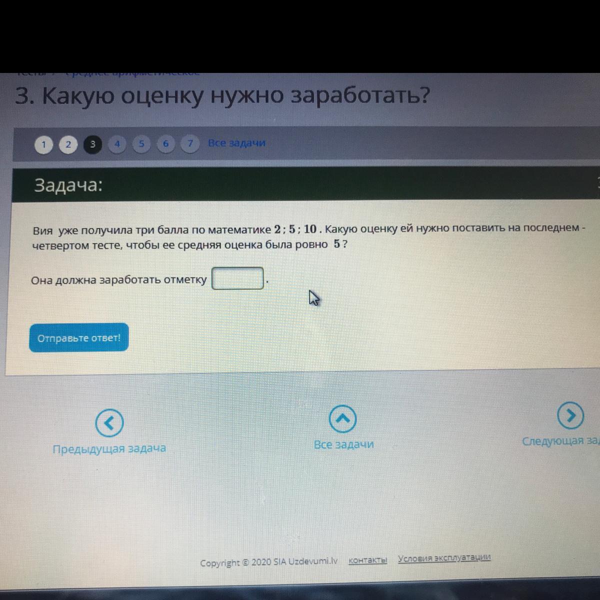 Вия уже получила три балла по математике 2; 5; 10. Какую оценку ей нужно поставить на последнем -