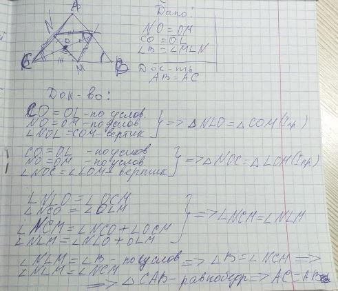 На сторонах AB, BC и CA треугольника ABC отмечены точки L, M, N так что середины отрезков MN и CLl совпадают и угол B = углу MLN. Докажите что AB=AC