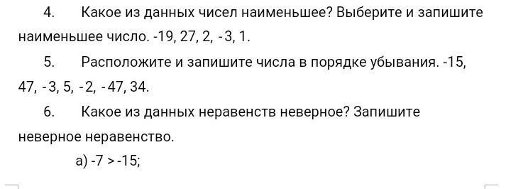 4. отрицательные числа. -19 и -3. Наименьшее число -19
