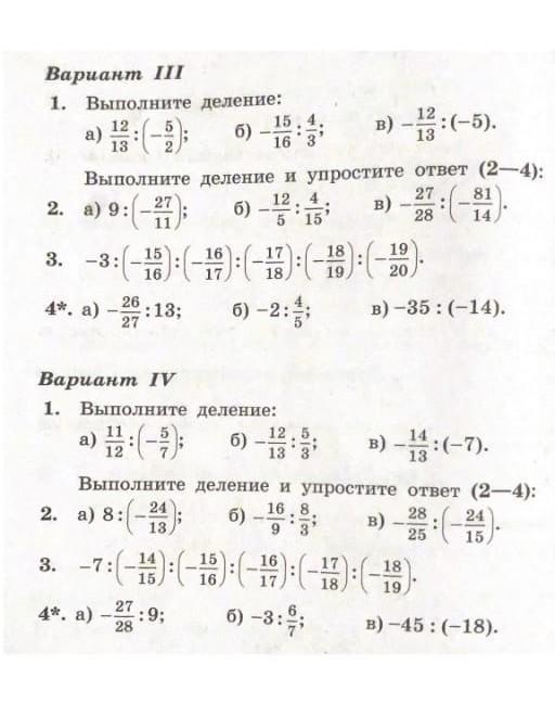 в) − 12 /13 ÷(−5)=− 12 /13 ÷(− 5 /1 )=− 12 /13 ·(− 1 /5 )= 12 · 1 /13 · 5 = 12 /65