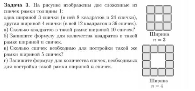 г) Заметим из условия задачи, что количество спичек для квадратов 3*3 и 4*4 в 3 раза больше, чем количество квадратов. А значит формула будет выглядеть так: