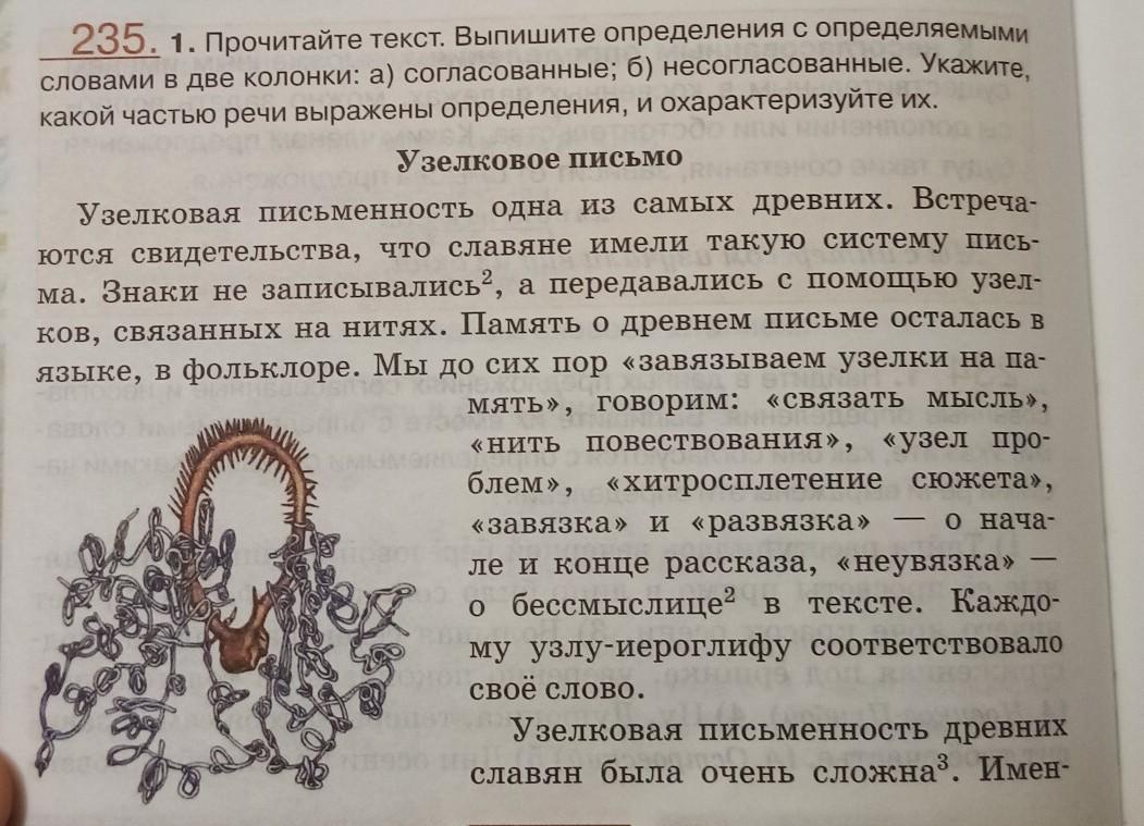 с помощью узелков×, /связанных на нитях/ (прич. оборот);