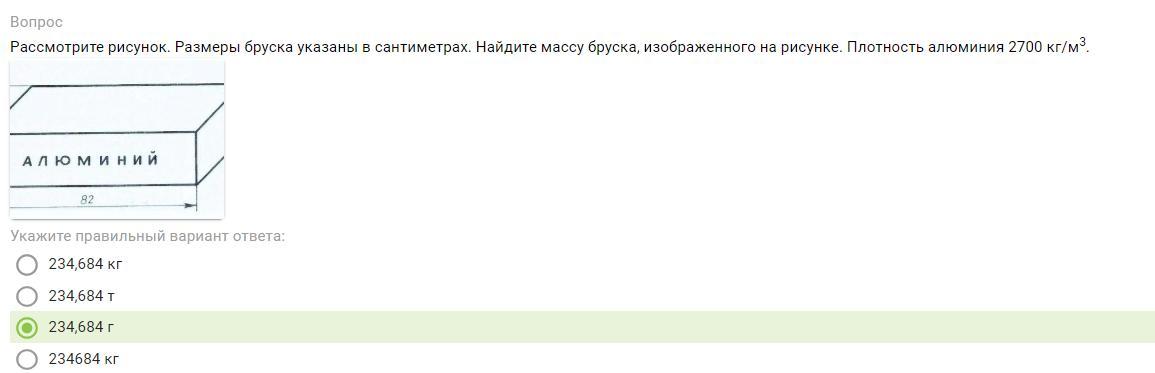 m=2 700*0,82*0,53*0,2=234,684 (кг)
