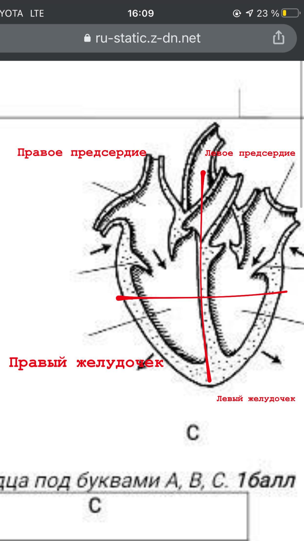 На прикрепленном фото я обозначила где находится левое предсердие, правое предсердие, левый желудочек и правый желудочек