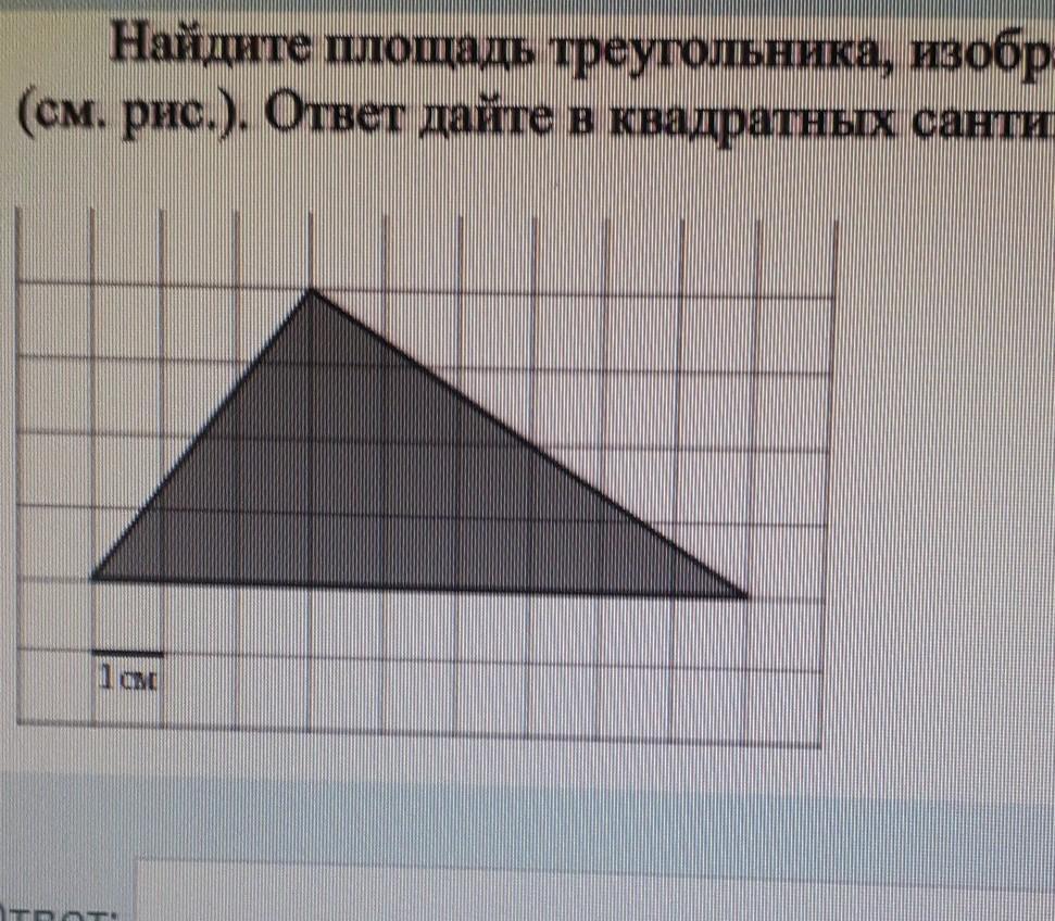 Срочно! найдите площадь треугольника изображенного на клетчатой бумаге с размером клетки 1х1 ответ дайте см2