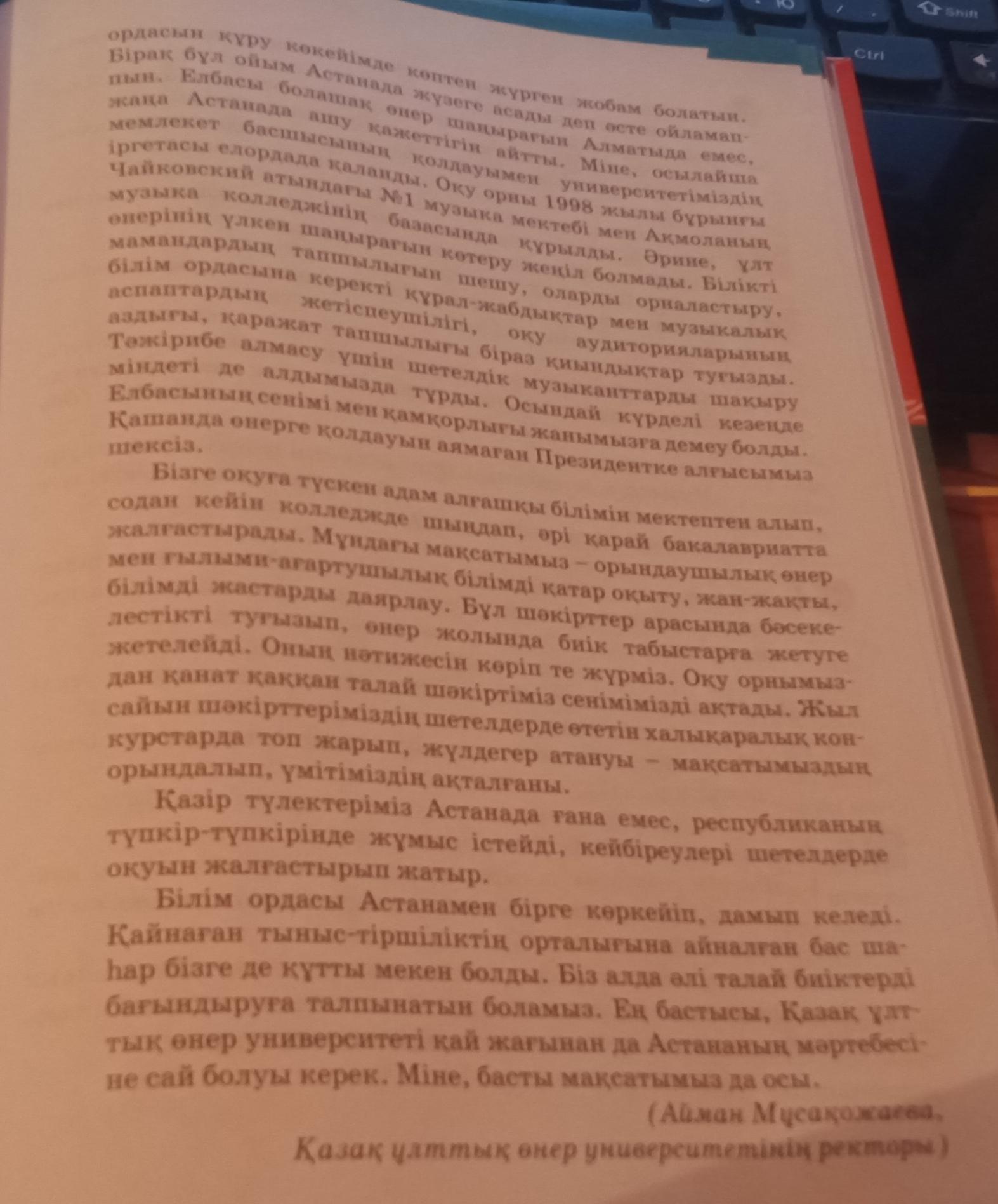 оқылым мәтінін сұхбатқа айналдырып жазыңдар.Авторға 4-5 сұрақ қойып,жауабын мәтіннен алыңдар