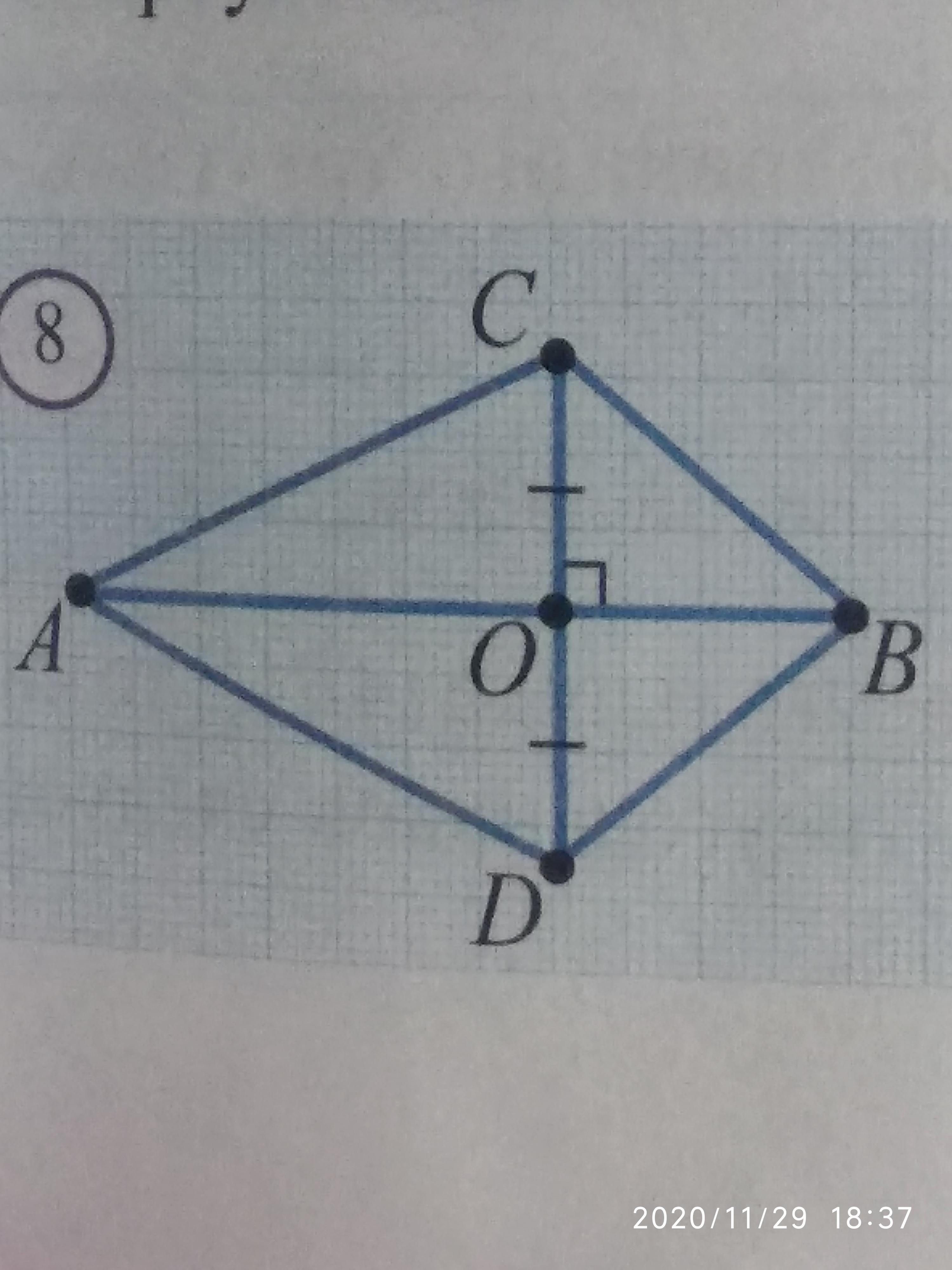 Т.к. CO=OD, <DOB=<COB, OB - общая, то тр. COB= тр.BOD по двум сторонам и углу между ними, отсюда CB=BD