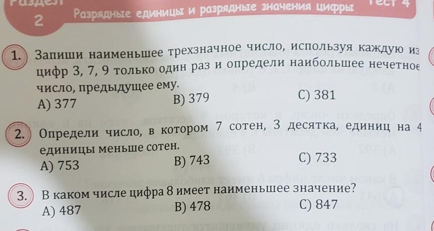 2 . С) 733 так как сотен 7 а единиц в этом числе на 4 меньше 7-4=3