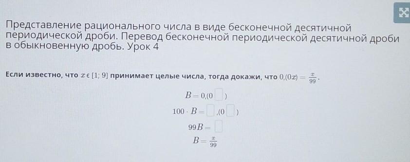 Если известно, что хє [1; 9] принимает целые числа, тогда докажи, что 0,(0x) =