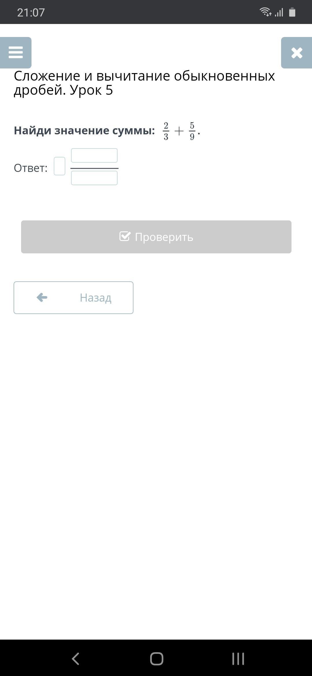 Чтобы смочь сложить эти дроби, нужно привести их к общему знаменателю. НОК чисел 3 и 9 будет 9.