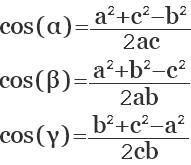 Ответ: Чтобы найти чему равен угол, надо сначала посчитать косинус угла 90 градусов, а потом использовать формулы из картинки.