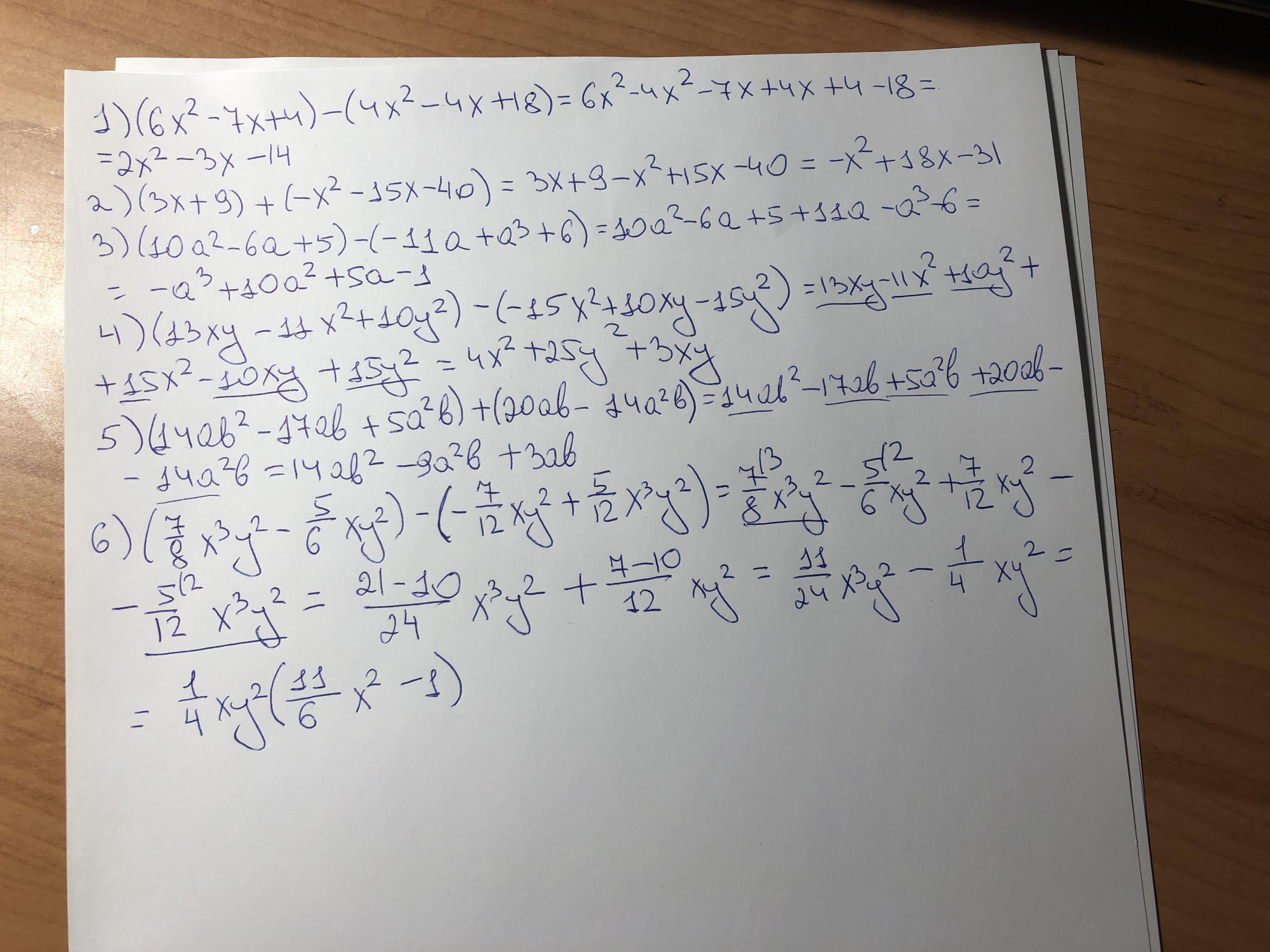 6)7x^3y^2/8-5xy^2/6+7xy^2/12-5x^3y^2/12=11x^3y^2/24-xy^2/4