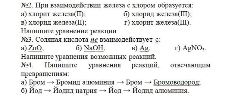 2.Б 2Fe+3Cl2=2FeCl3