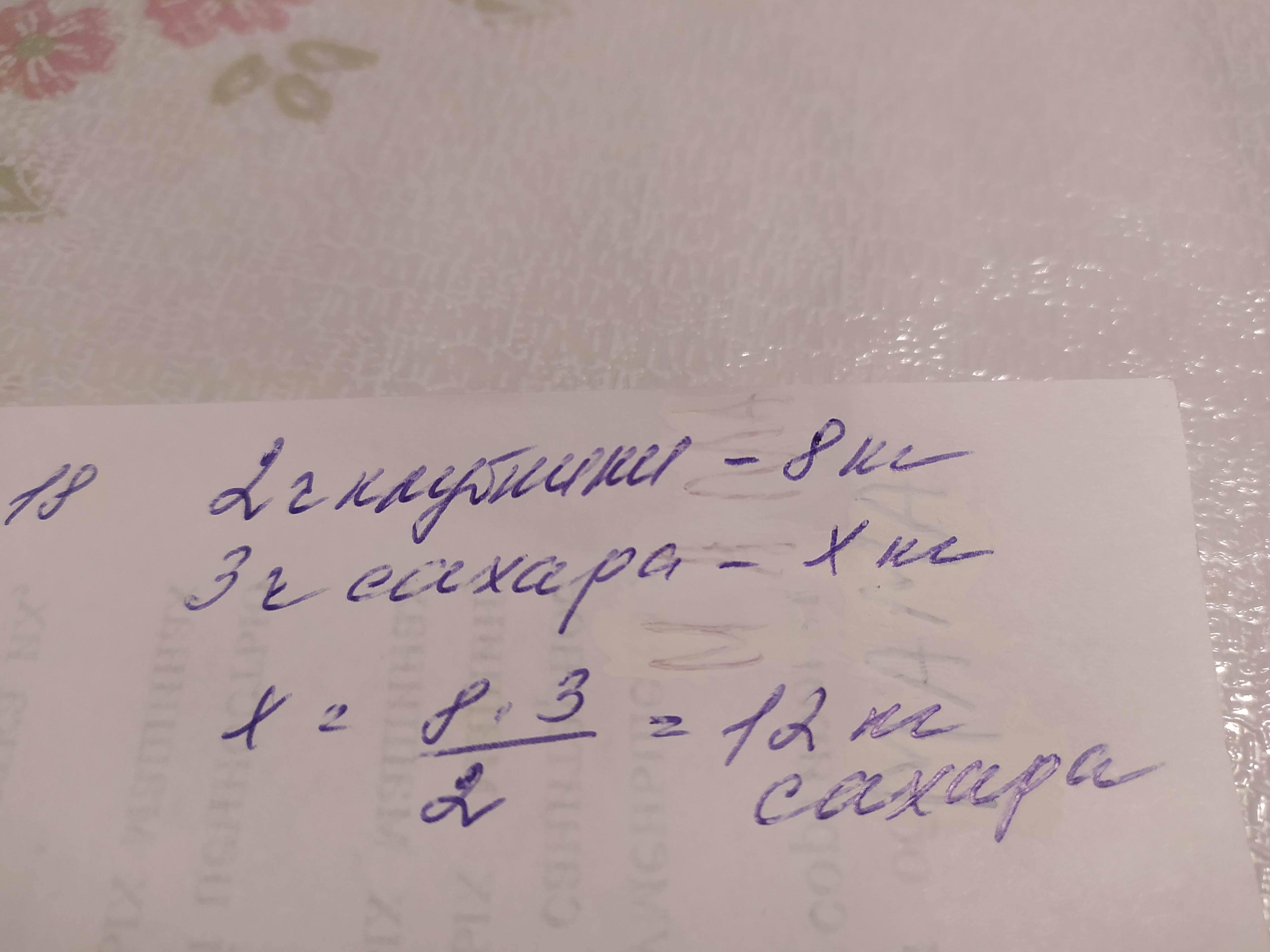 2) 3 · 4 = 12 (кг) - масса сахара (3 части).