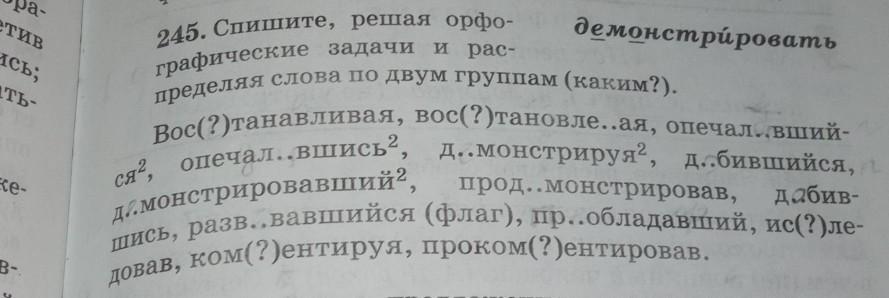 Причастия: восстановленная, опечалившийся, добившийся, демонстрировавший, развивавшийся, преобладавший