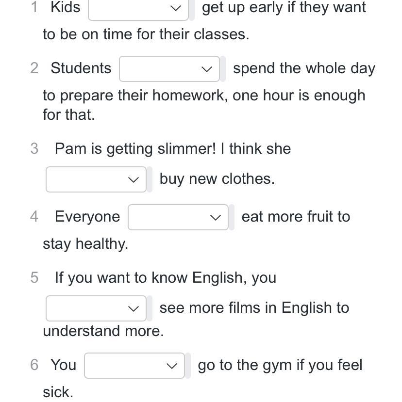 ЗНАТОКИ АНГЛИЙСКОГО, ПОМОГИТЕ. ТАМ ЛЕГКО, НО Я НИЧЕГО НЕ ПОНИМАЮ, ДАМ МНОГО БАЛЛОВ:( там типо should или shouldn’t