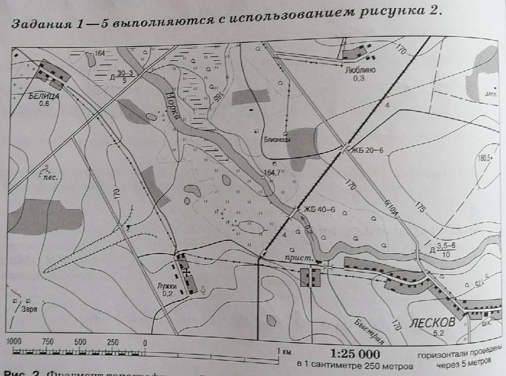 4)В каком направлении от оврага находится песчаный карьер.....