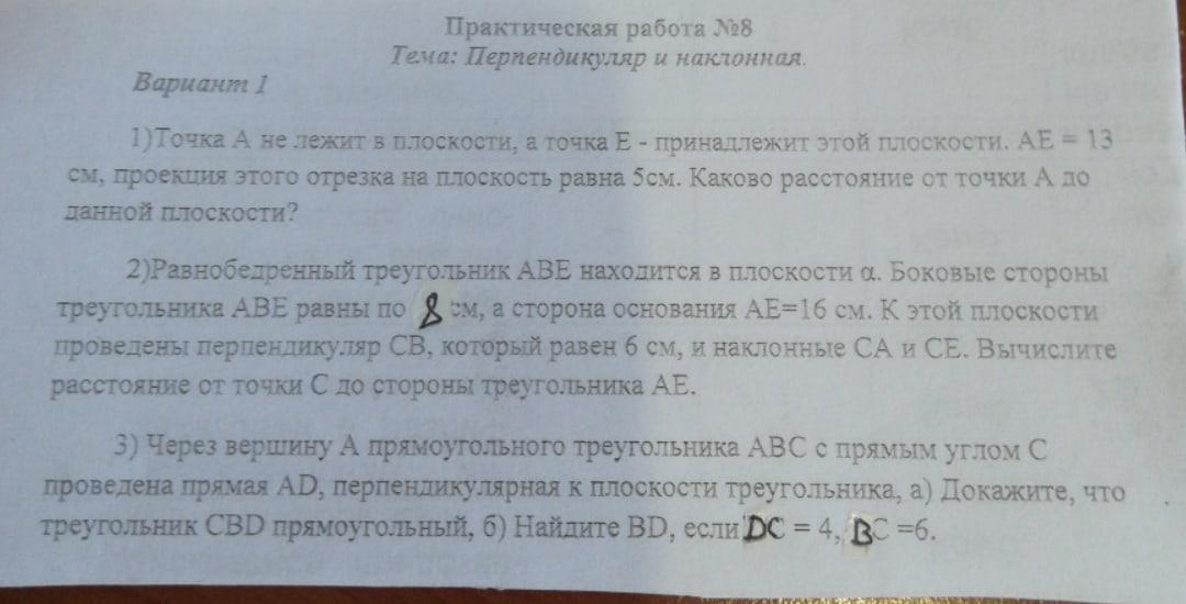 3) а) AD ⊥ пл. АВС, следовательно, AD ⊥ СВ;