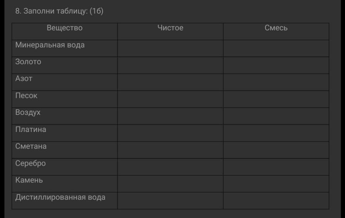 Например воздух это смесь.Потому что оно состоит из азота кислорода и т.д