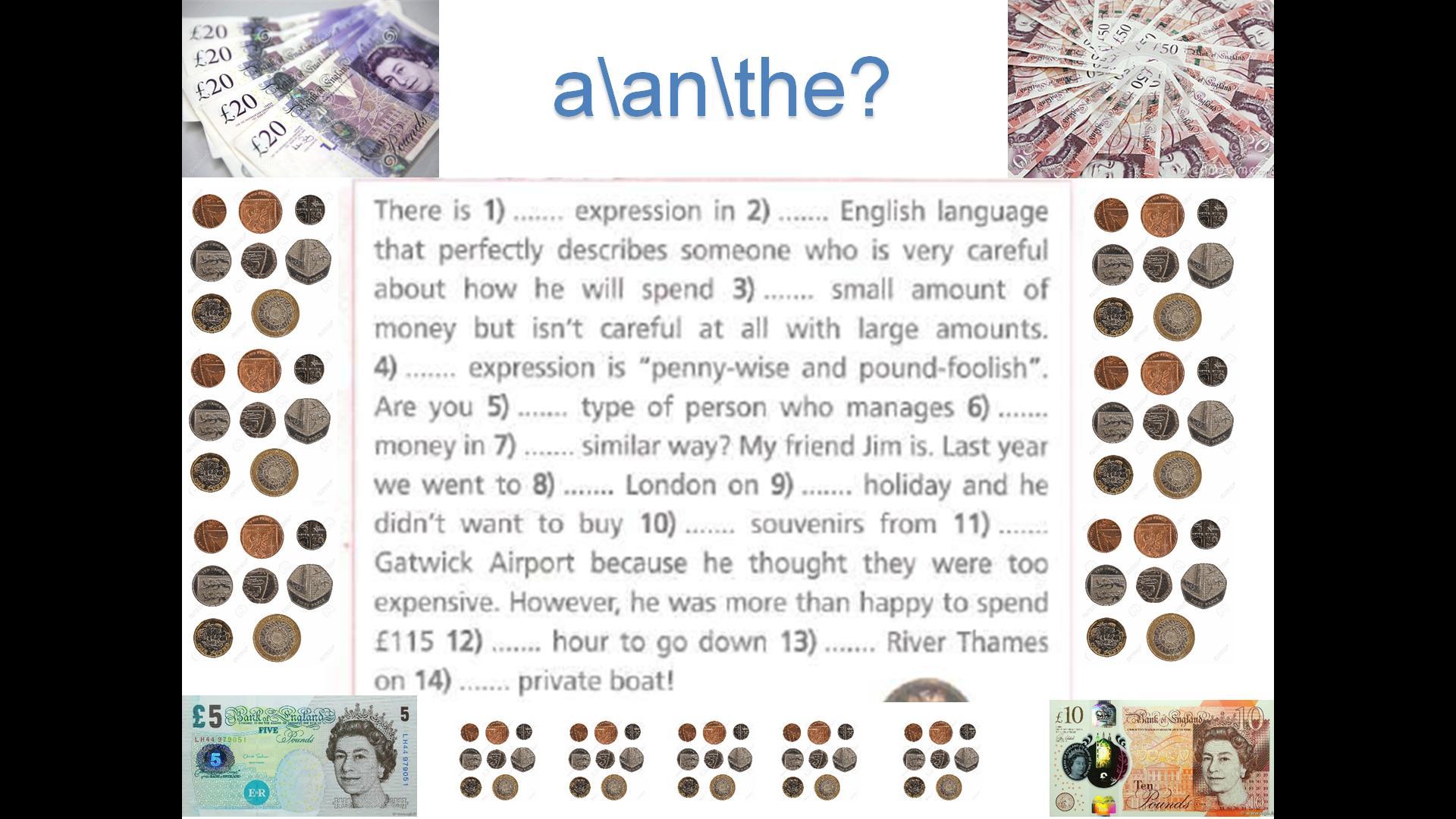 There is an expression in the English language that perfectly describes someone who is very careful about how he will spend a small amount of money but is not careful at all with large amounts.The expression is "penny-wise and pound foolish". Are you a type of person who manages money in the similar way? My friend Jim is. Last year we went to London on holiday and he don't won't to buy souvenirs from the Gatwick Aiport because he thought they were too expensive. However he was more than happy to spend 115 pounds an hour to go down the River Thames on a private boat.