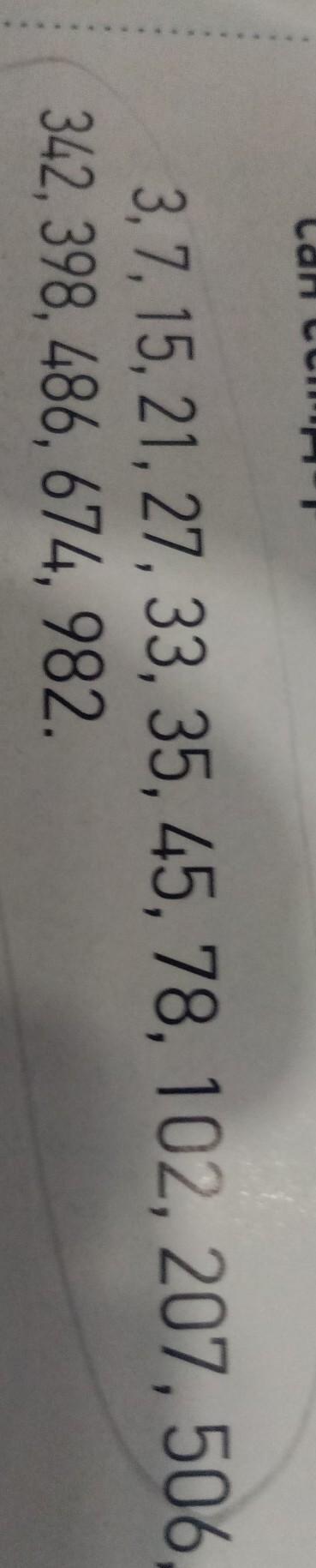Үш, жеті, он бес, жиырма бір, жиырма жеті, отыз үш, отыз бес, қырық бес, жетпіс сегіз, жүз екі, екі жүз жеті, бес жүз алты, үш жүз қырық екі, үш жүз тоқсан сегіз, төрт жүз сексен алты, алты жүз жетпіс төрт, тоғыз жүз сексен екі