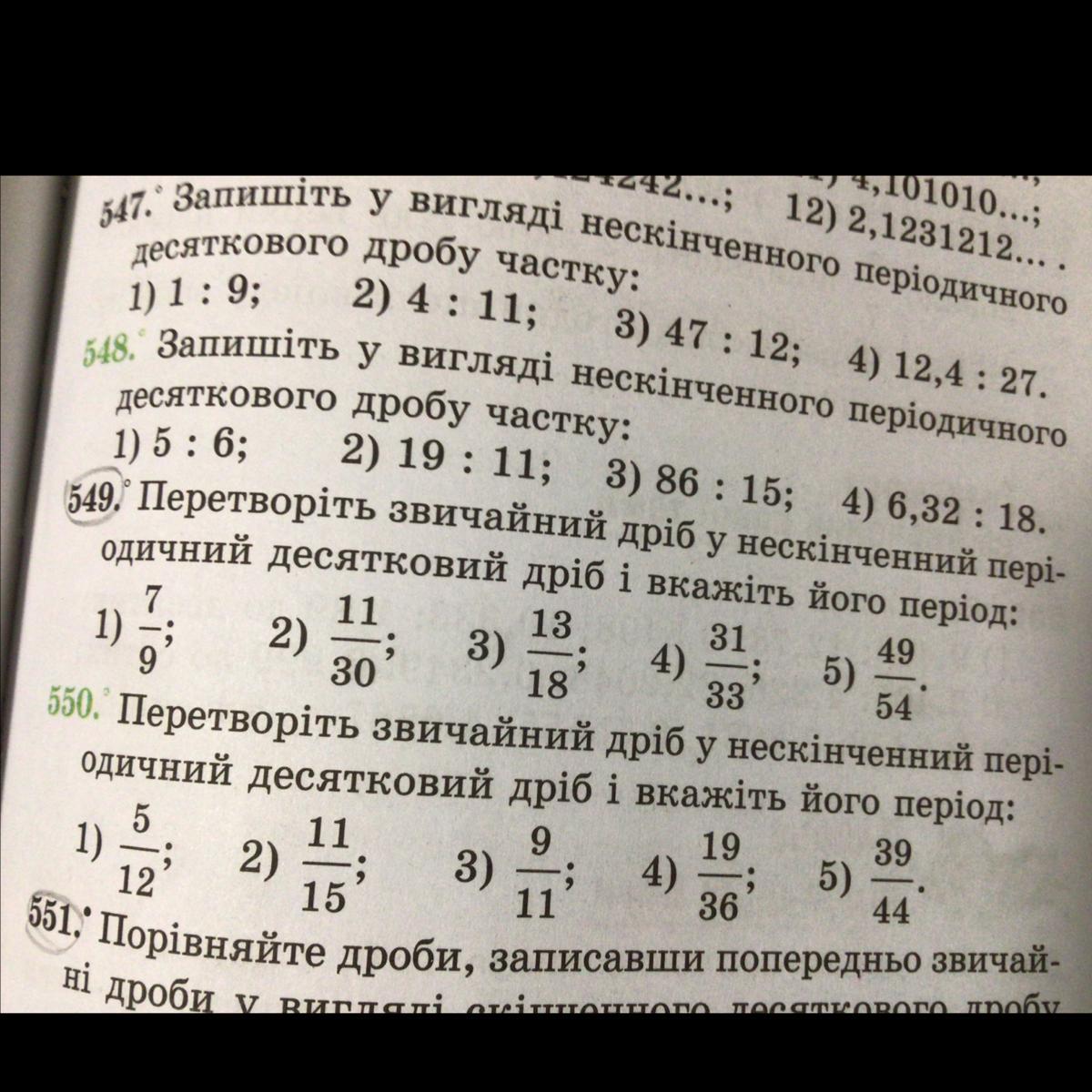 549. Перетворіть звичайний дріб у нескінченний пері-