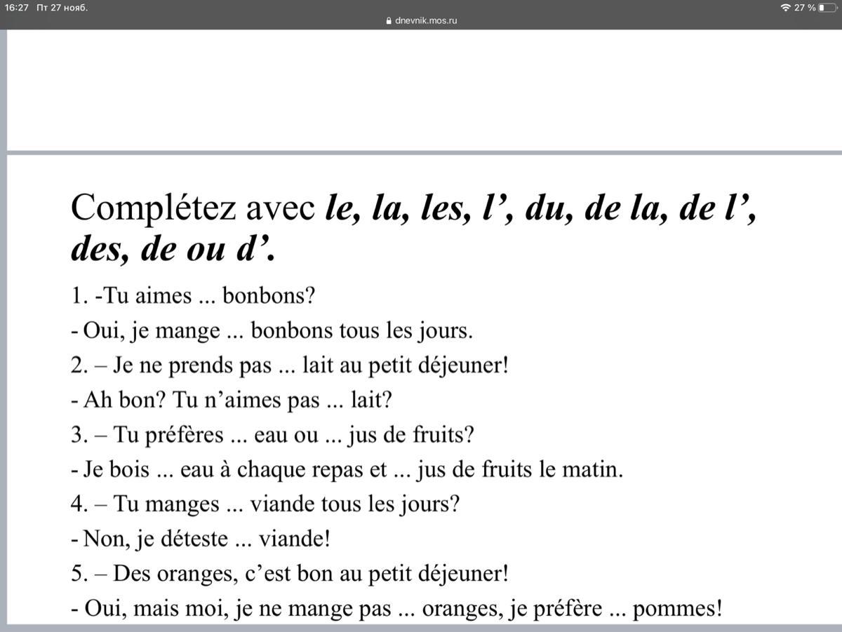 5.d`oranges des или les pommes,извини 5 реально незнаю,что не понял,пиши,отвечу