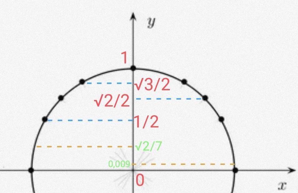 Какие значения не может принимать ордината точки на единичной полуокружности,