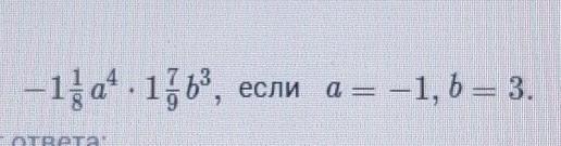 НАЙДИТЕ ЗНАЧЕНИЕ ОДНОЧЛЕНА. фото прикреплено если так удобнее. найдите степень одночлена - 1 1/8a^4×1 7/9b^3 если а=-1,б=3
