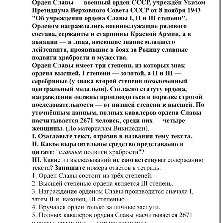 III. Какие из высказываний не соответствуют содержанию текста? Запишите номера ответов в тетрадь.