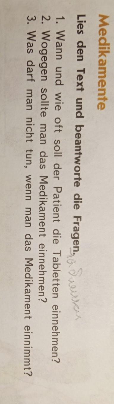 2)Man sollte das Medikament bei Erkältung und Grippe gegen Kopfschmerzen, Schnupfen, Husten, Halsschmerzen einnehmen. ( таблетки следует принимать при простуде и гриппе при головной боли , насморке, кашле и боли в горле )