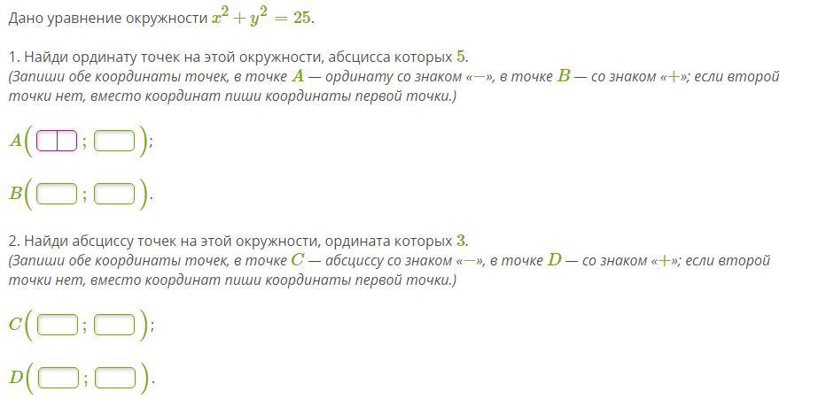 Ответ: 1) А (5; 0), В(5; 0). 2) С (-4; 3), D (4; 3).