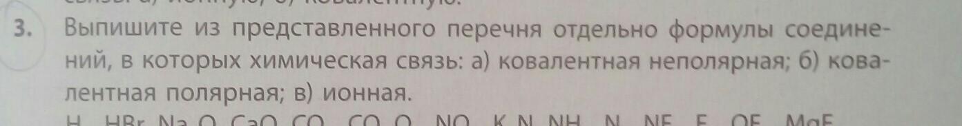 Выпишите из представленного перечня отдельно формулы соединений , в котором химическая связь: а)ковалентная непопулярна ;б)ковалентно популярной ;в)ионная