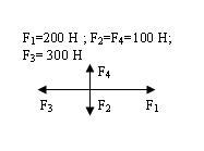 Чтобы найти результирующую силу, нужно построить суму векторов всех сил. Векторы F2 и F4 равны, но направлены в противоположные стороны, соответственно, их можно не считать при складывании. Чтобы найти сумму векторов F1 и F3, нужно от большего отнять меньший, тк они направлены в противоположные стороны. Fрез=300-200=100 Н