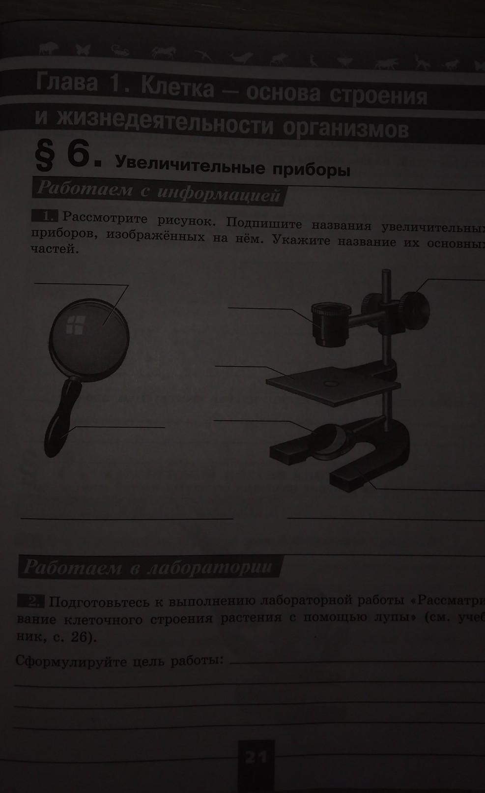 рассмотрите рисунок. подпишите названия увеличительных приборов, изображённых на нём. укажите названия их основных частей