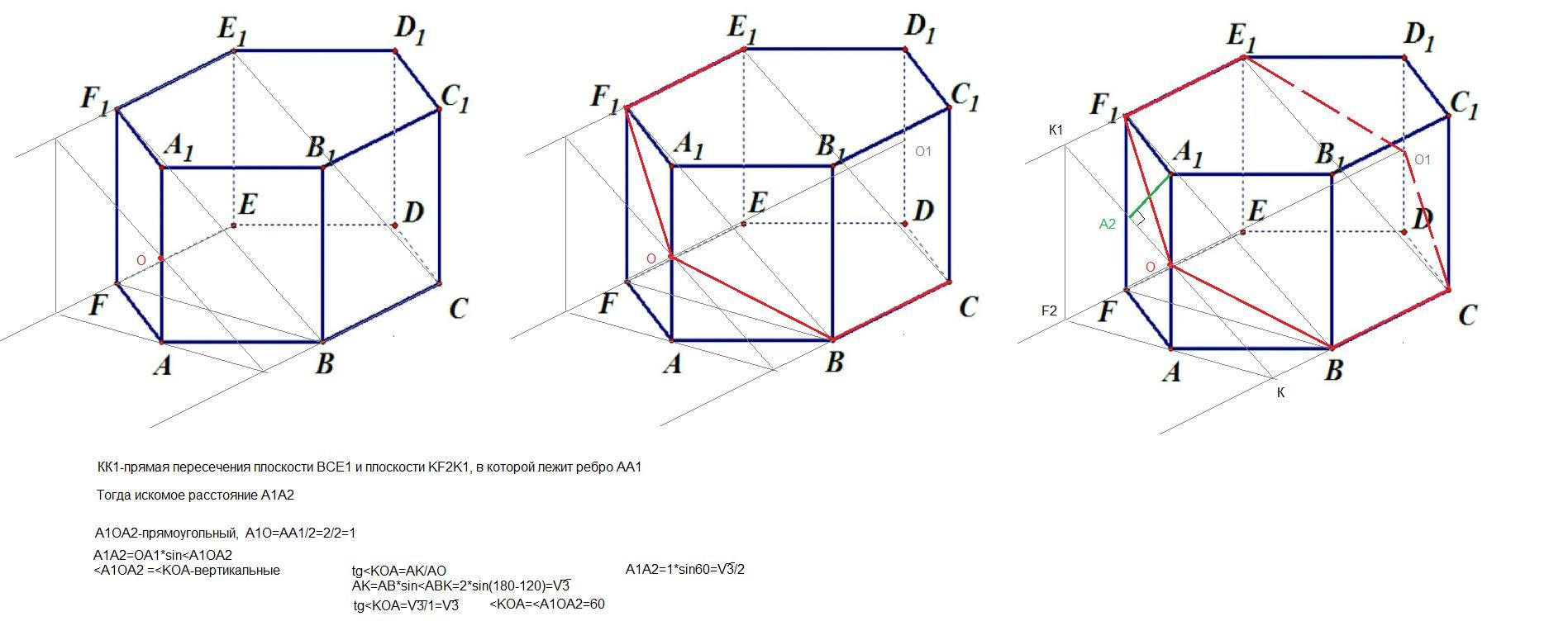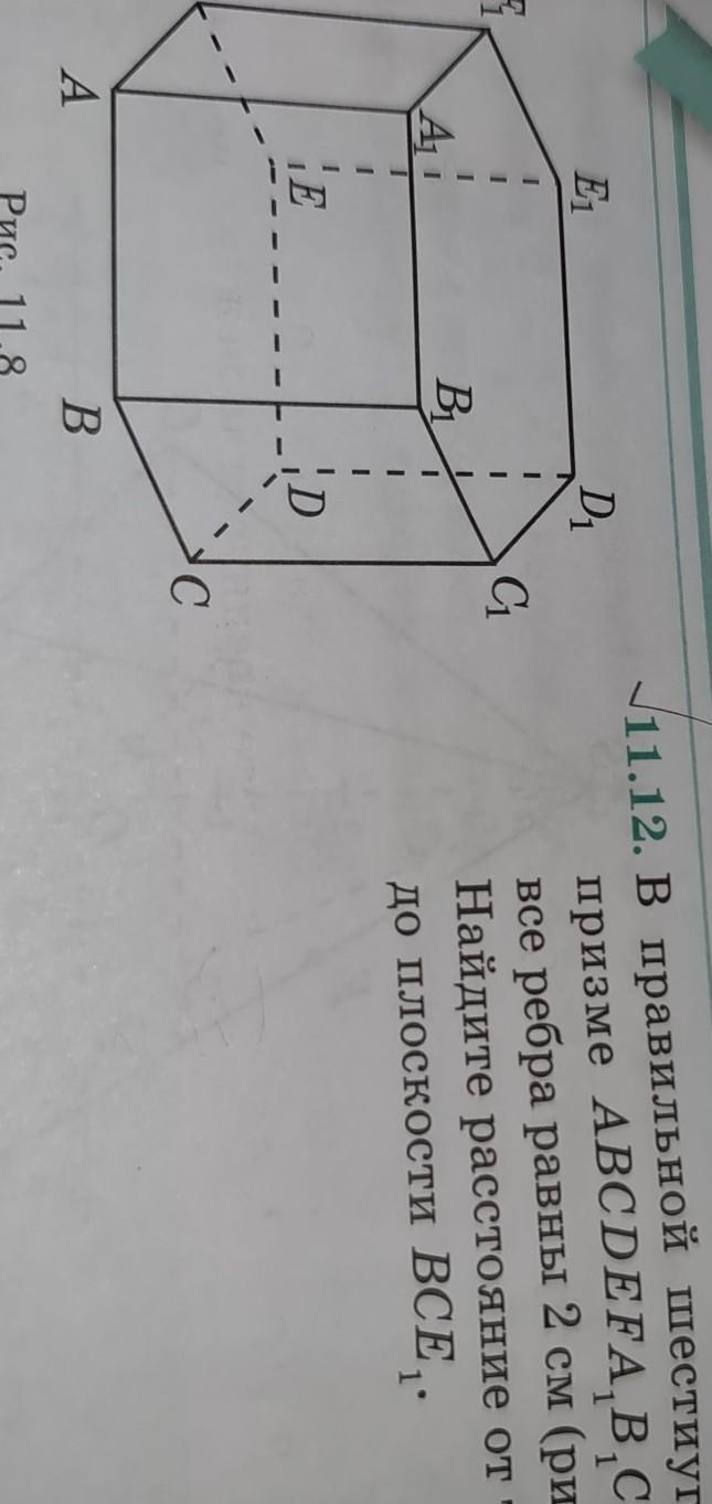 В правильной шестиугольной призме ABCDEFA1B1C1D1E1F1 все ребра равны 2 см . Найдите расстояние от точки А1 до плоскости ВСЕ1