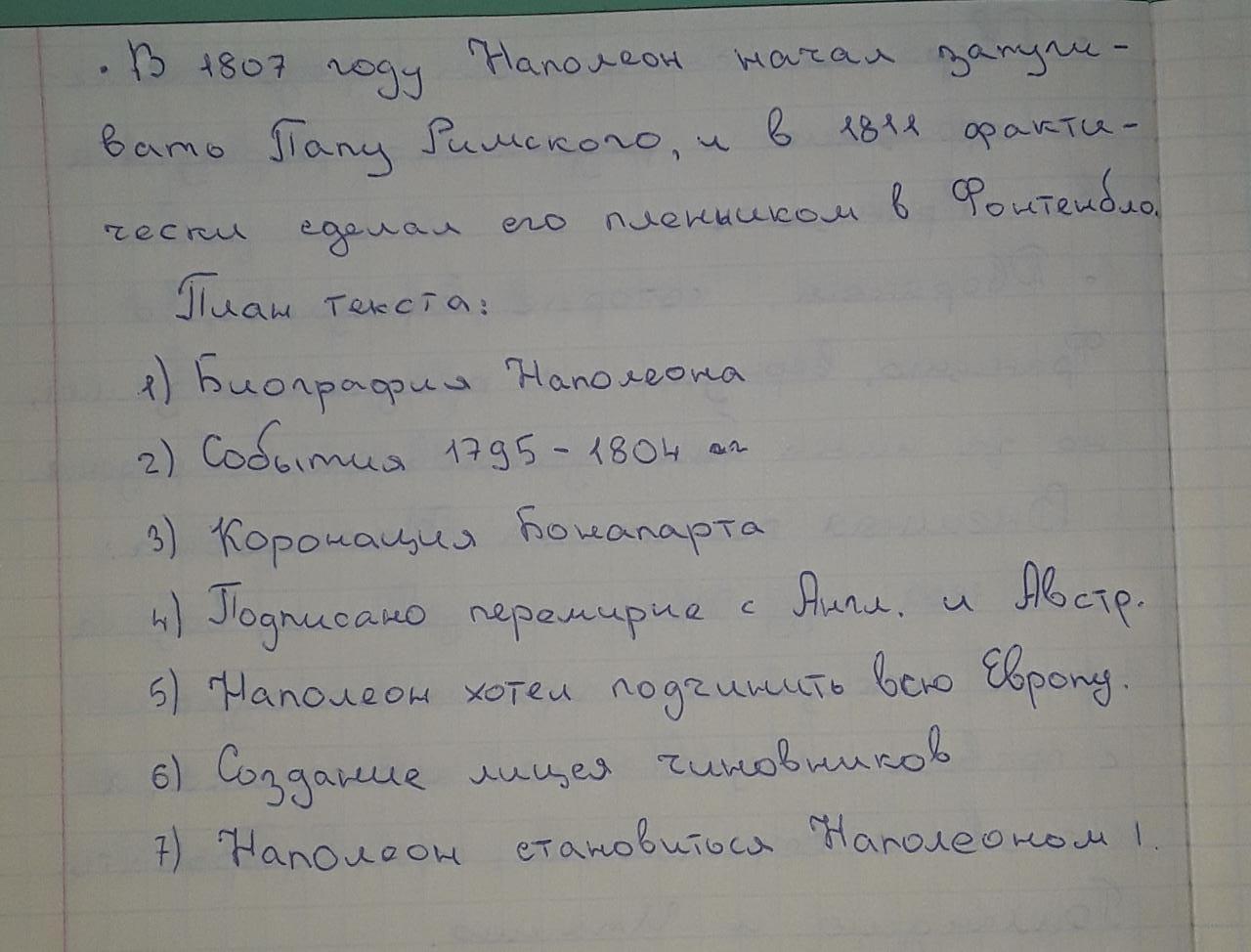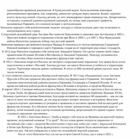 Прочитать текст «Наполеон Бонапарт – государственный деятель, военачальник, законодатель, реформатор» и выполнить задание: составить план: разделите текст на смысловые части и придумайте к ним заголовки.