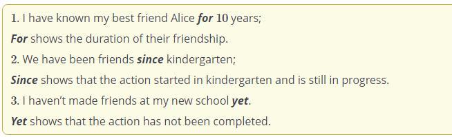 Complete the sentences with the adverbs of Present Perfeest tense yet ,for,since.