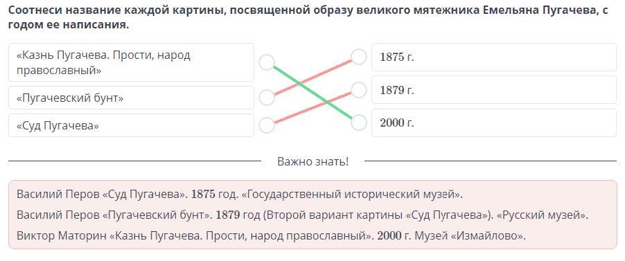 Соотнеси название каждой картины, посвященной образу великого мятежника Емельяна Пугачева, с годом ее написания.