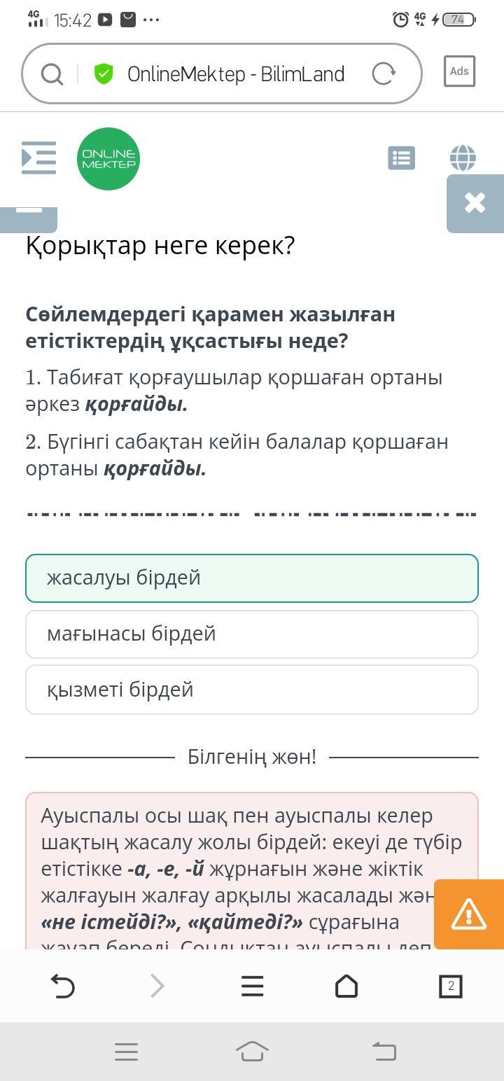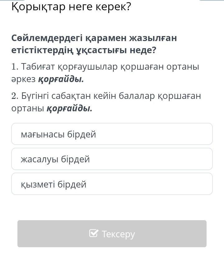 2. Бүгінгі сабақтан кейін балалар қоршаған ортаны қорғайды.