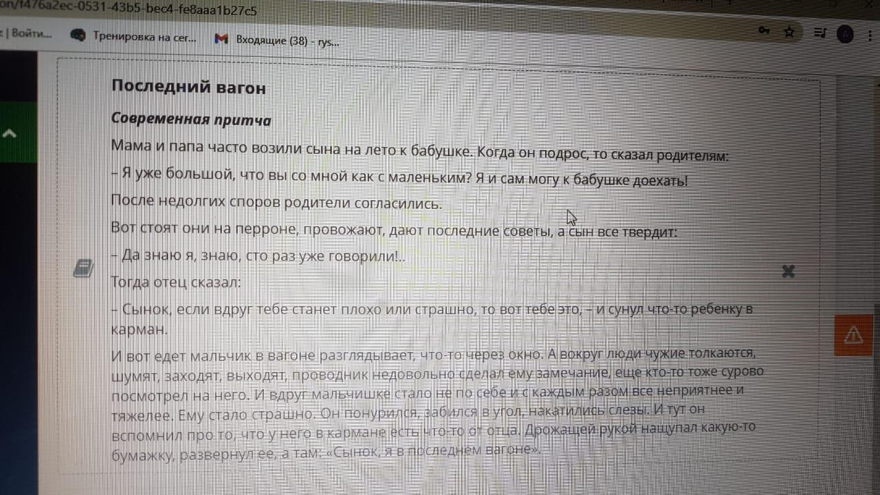 Прочитай современную притчу «Последний вагон». Определи, можно ли словосочетание «последний вагон» отнести к ключевым в последнем абзаце.